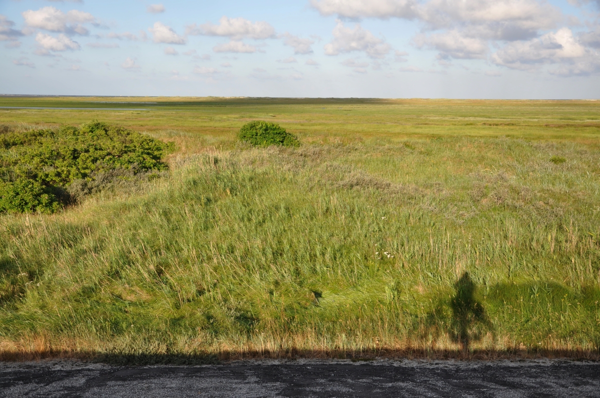 Frühmorgens auf dem Deichweg bei St. Peter-Ording, der um 06:16 Uhr nur von einigen wenigen Frühsportlern, Brötchenholern oder Fotografen befahren wird.